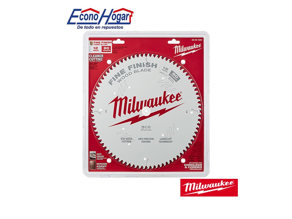 DISCO DE CORTE MADERA 12 80T DIENTES CORTE FINO MILWAUKEE SIERRA INGLETADOR