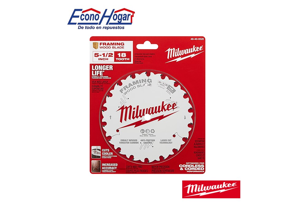/ DISCO DE CORTE MADERA 5-1/2 18T DIENTES MILWAUKEE PARA SIERRA CIRCULAR