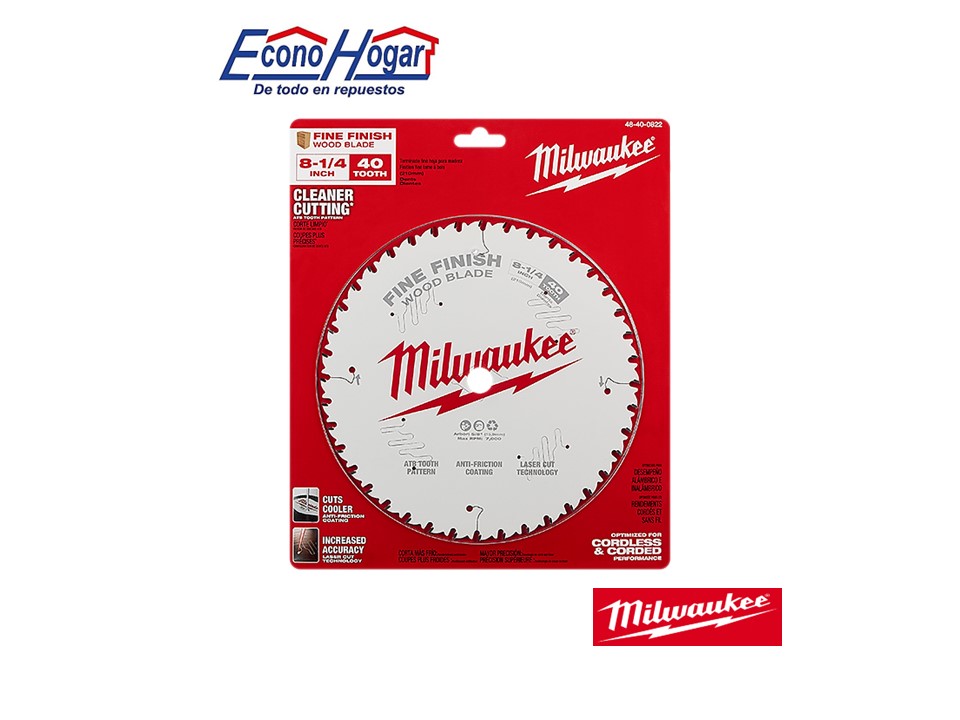 / DISCO DE CORTE MADERA 8-1/4 40T DIENTES CORTE FINO MILWAUKEE PARA SIERRA CIRCULAR