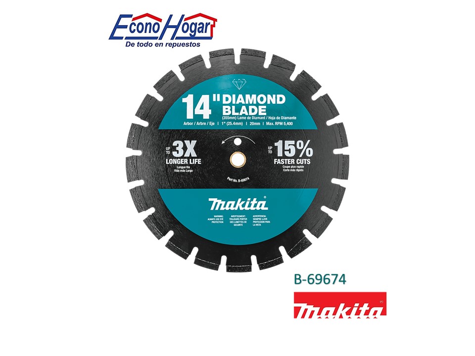 DISCO DE DIAMANTE CORTE DE CONCRETO ; ASFALTO; BLOQUE; «LADRILLO 14 MAKITA