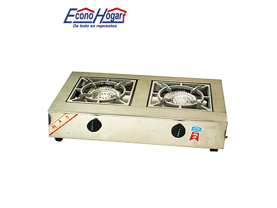 ESTUFA INDUSTRIAL ACERO INOXIDABLE 2 QUEMADORES ENCENDIDA AUTOMATICA 900mm x 420mm x 180mm