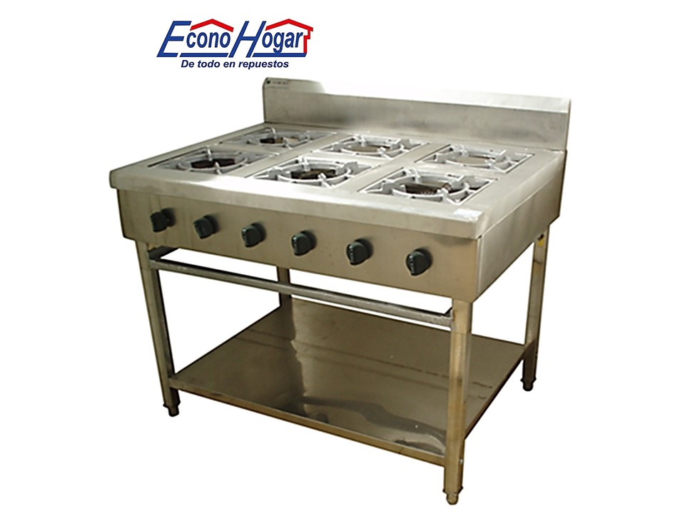 ESTUFA INDUSTRIAL ACERO INOXIDABLE CON BASE 6 QUEMADORES ENCENDIDA AUTOMATICA 1300mm x 735mm x 180mm