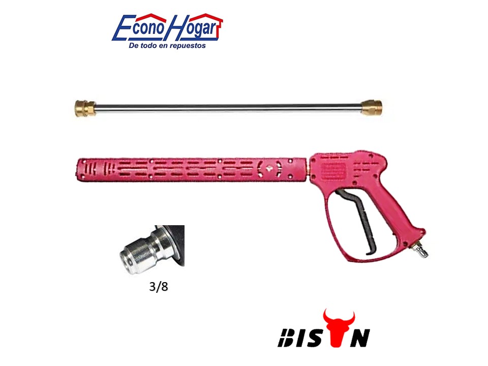 / PISTOLA CON LANZA HIDROLAVADORA 4000PSI 350BAR ACOPLE RAPIDO 3/8 ROJO