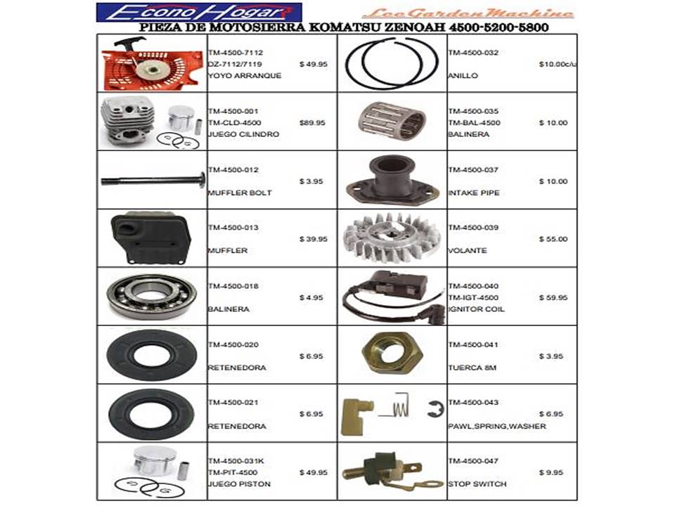 REPUESTOS MOTOSIERRA KOMATSU ZENOAH 4500,5200,5800 #1